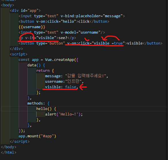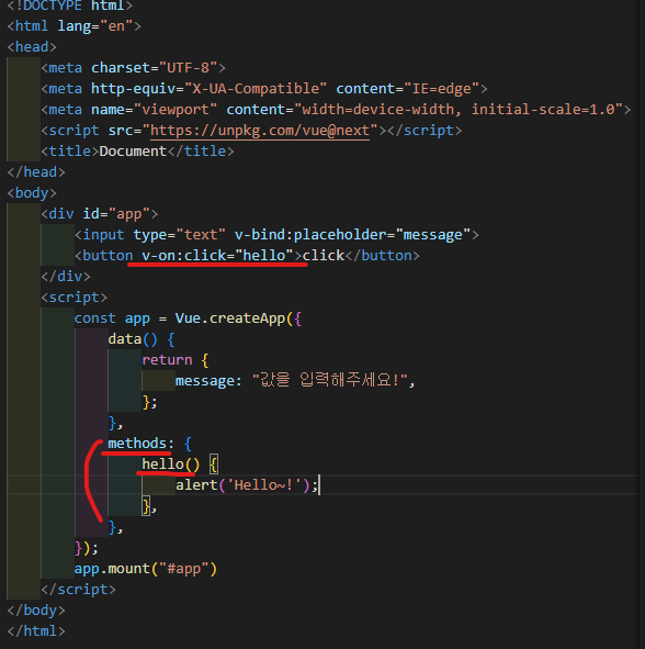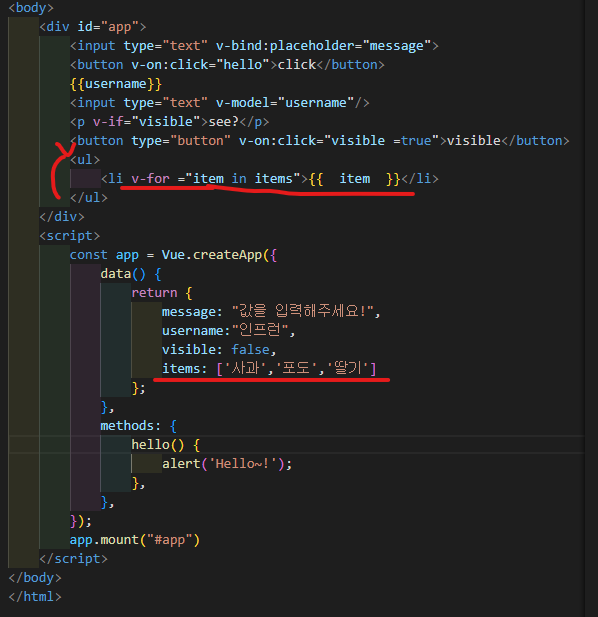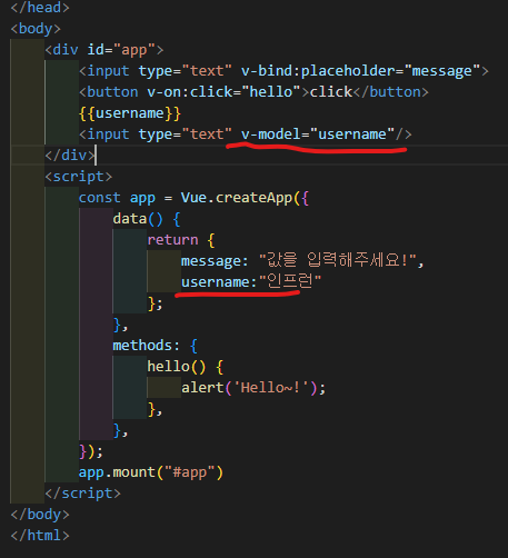 div id = "app"을 app.mount('#app')으로 연결